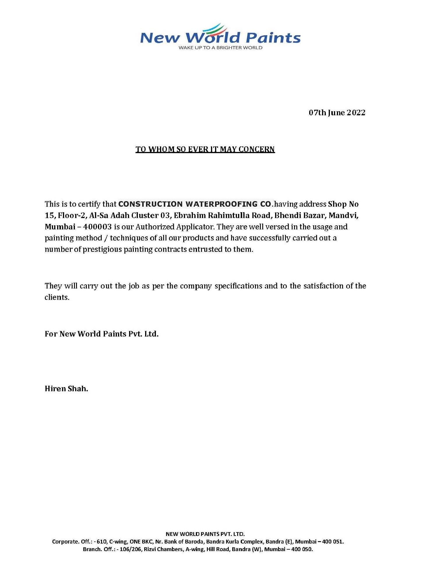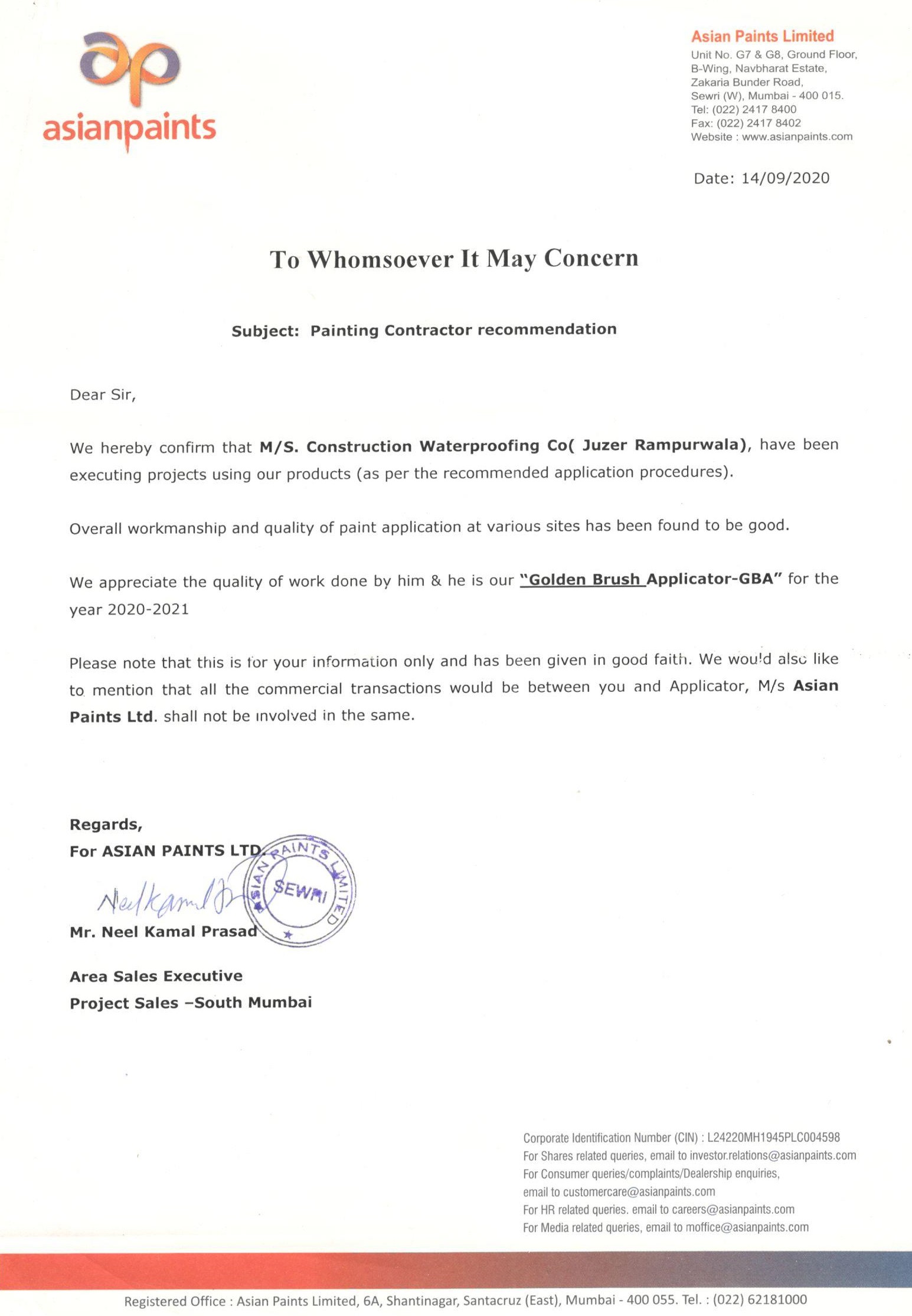 Asian Paints - Shirin CHSL - Tardeo