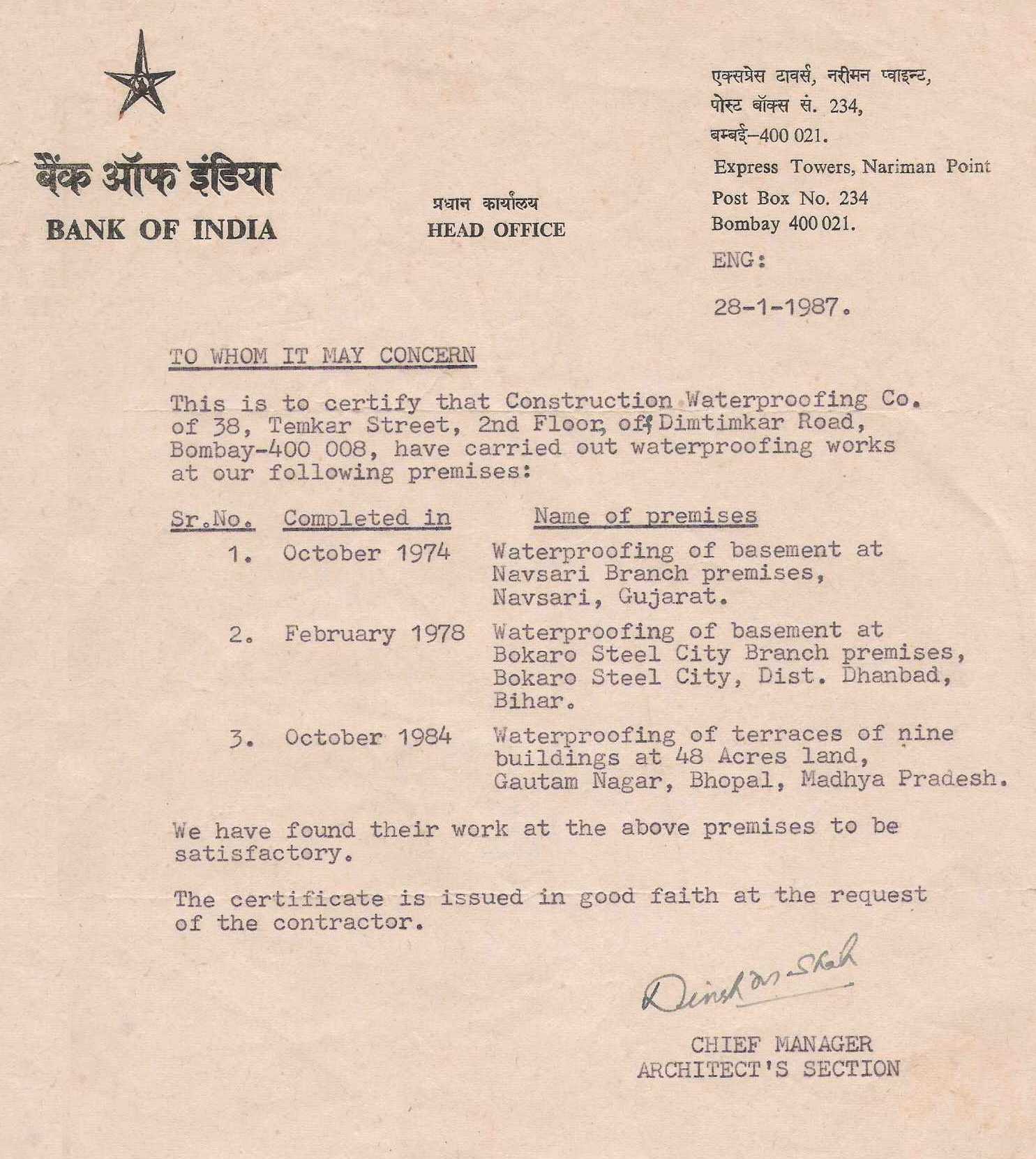 Bank of India-28-01-1987