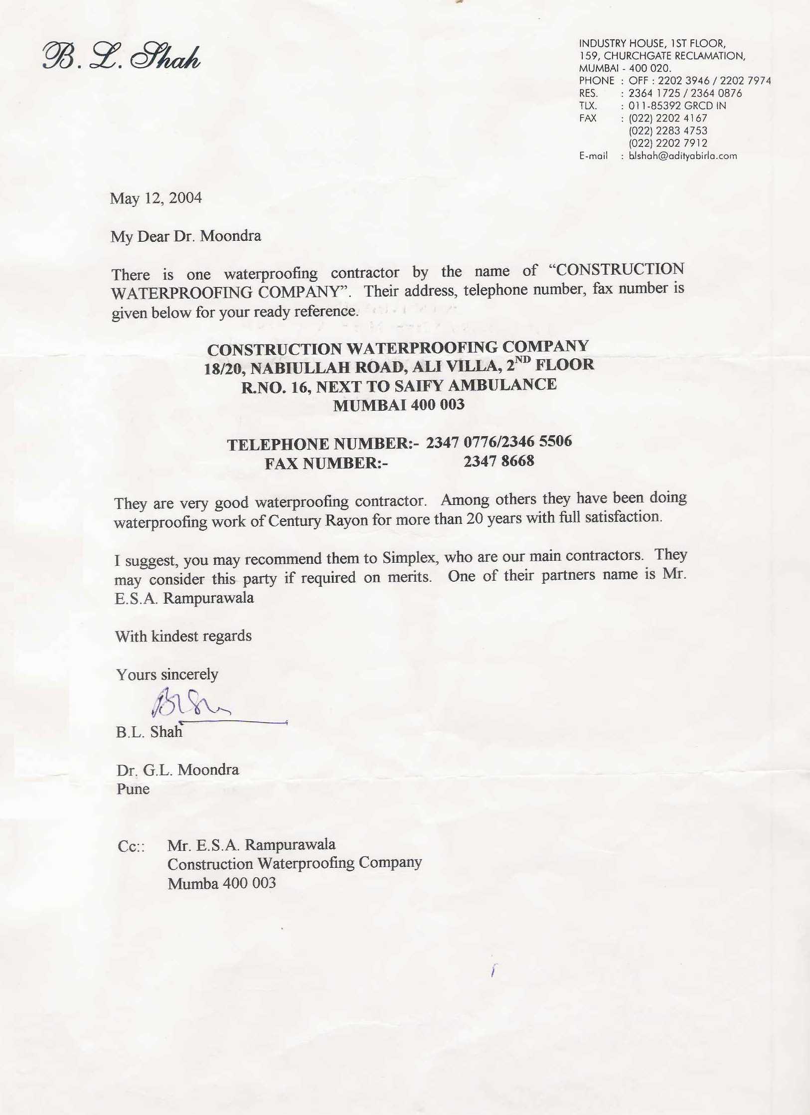 B L Shah - 12-05-2004