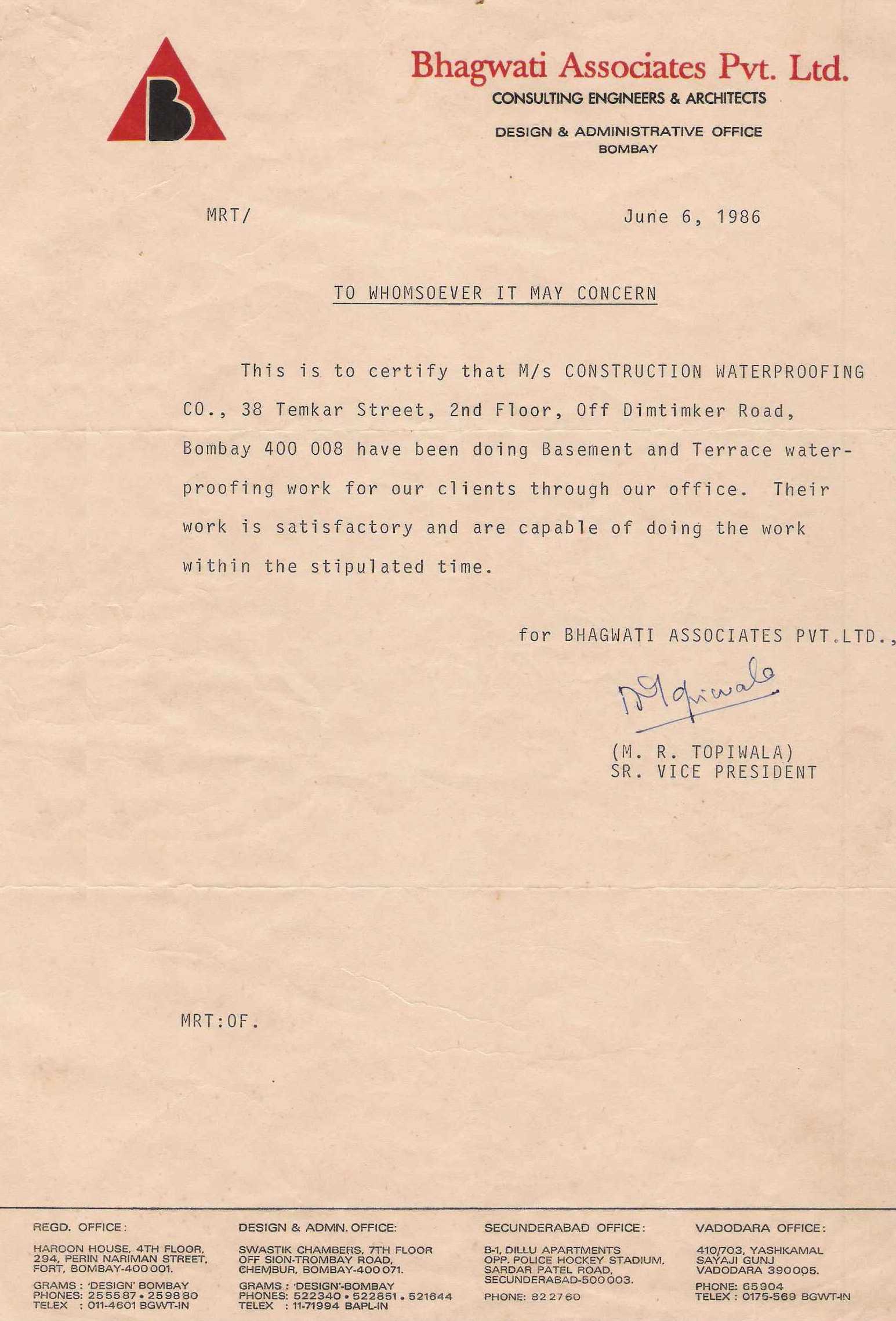 Bhagwati Associates Pvt Ltd - 06-06-1986