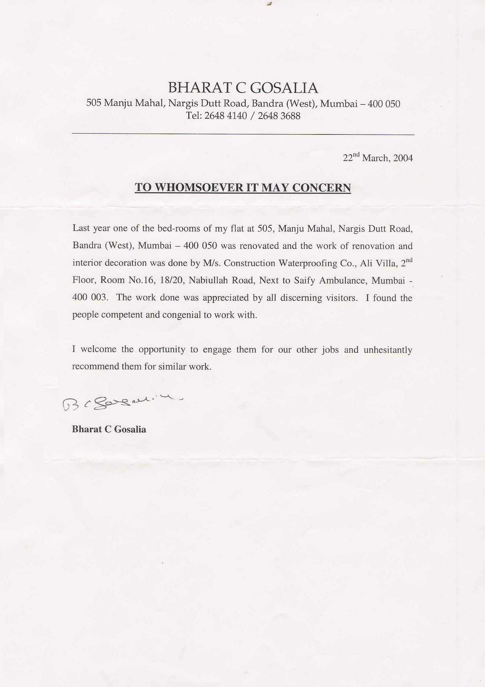Bharat C Ghosalia - 22-03-2004