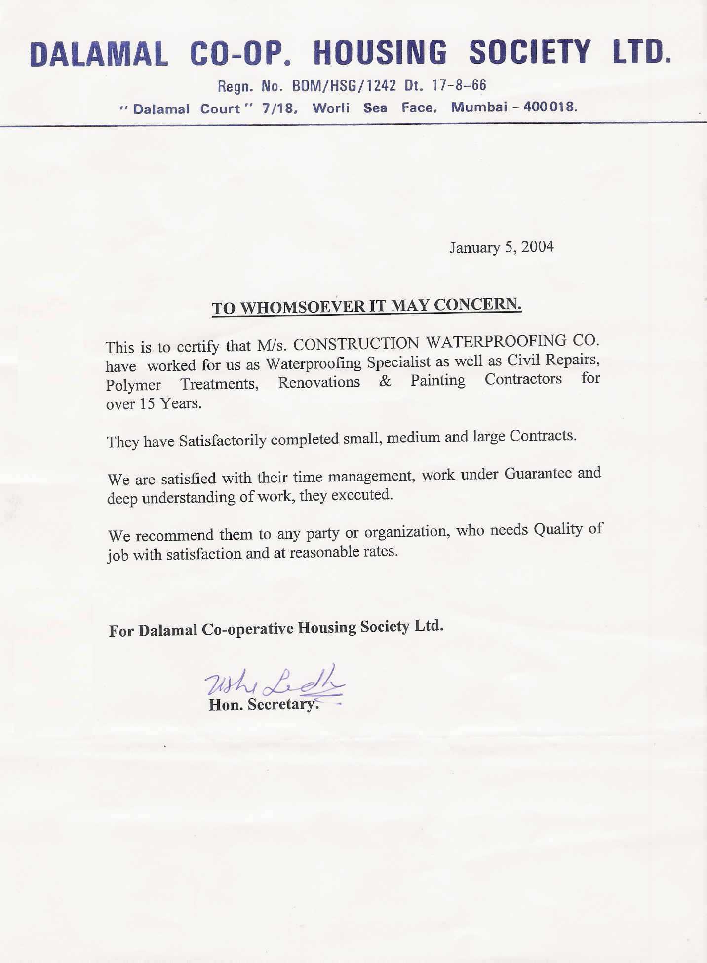 Dalalmal CHSL - Worli - 05-01-2004