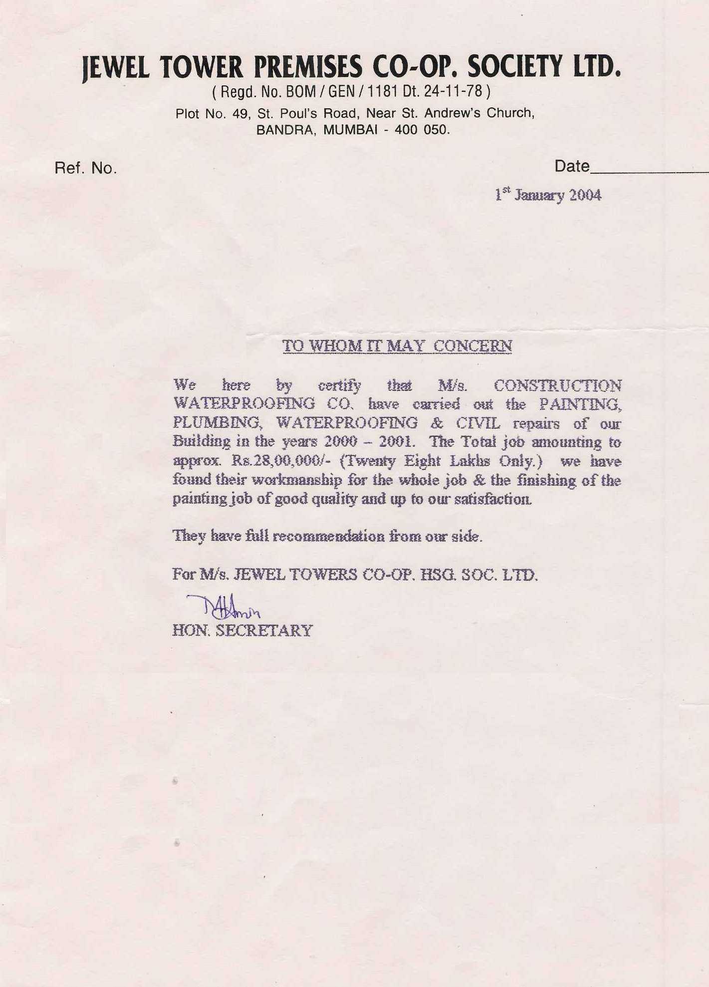 Jewel Tower Premises CSL - Bandra - 01-01-2004