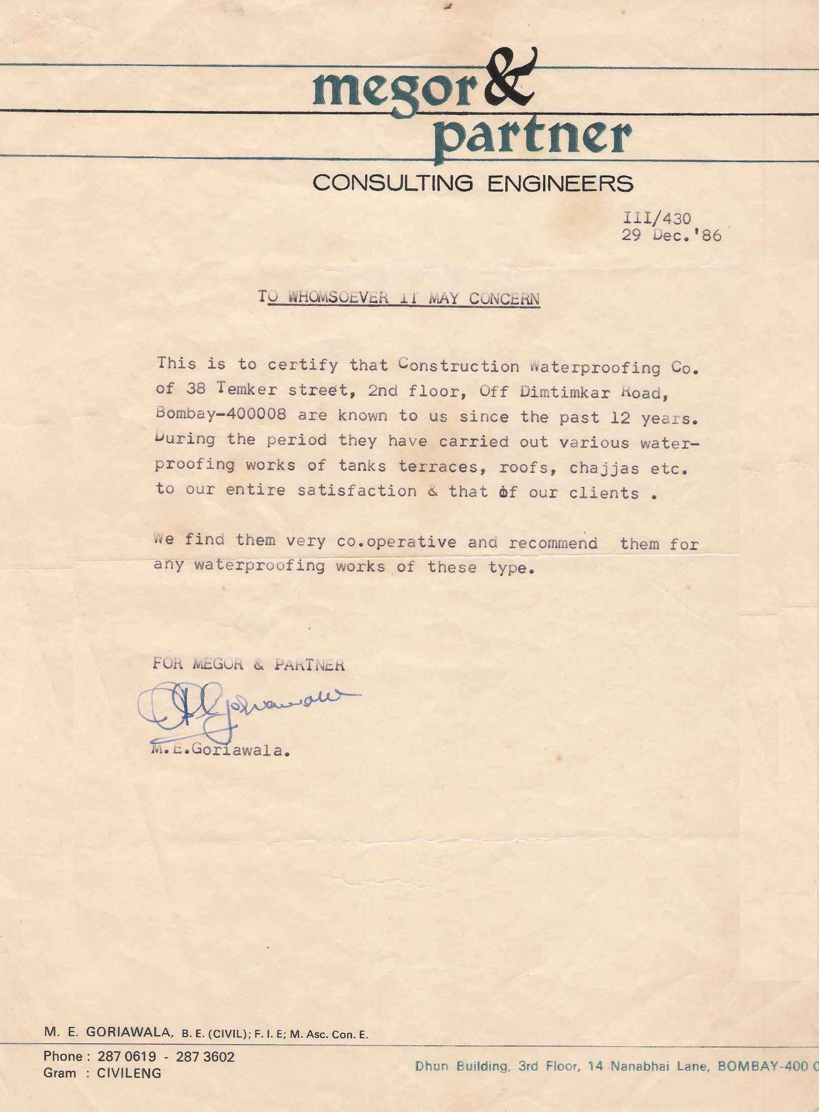 Magor & Partner Consulting Engineers - 29-12-1986