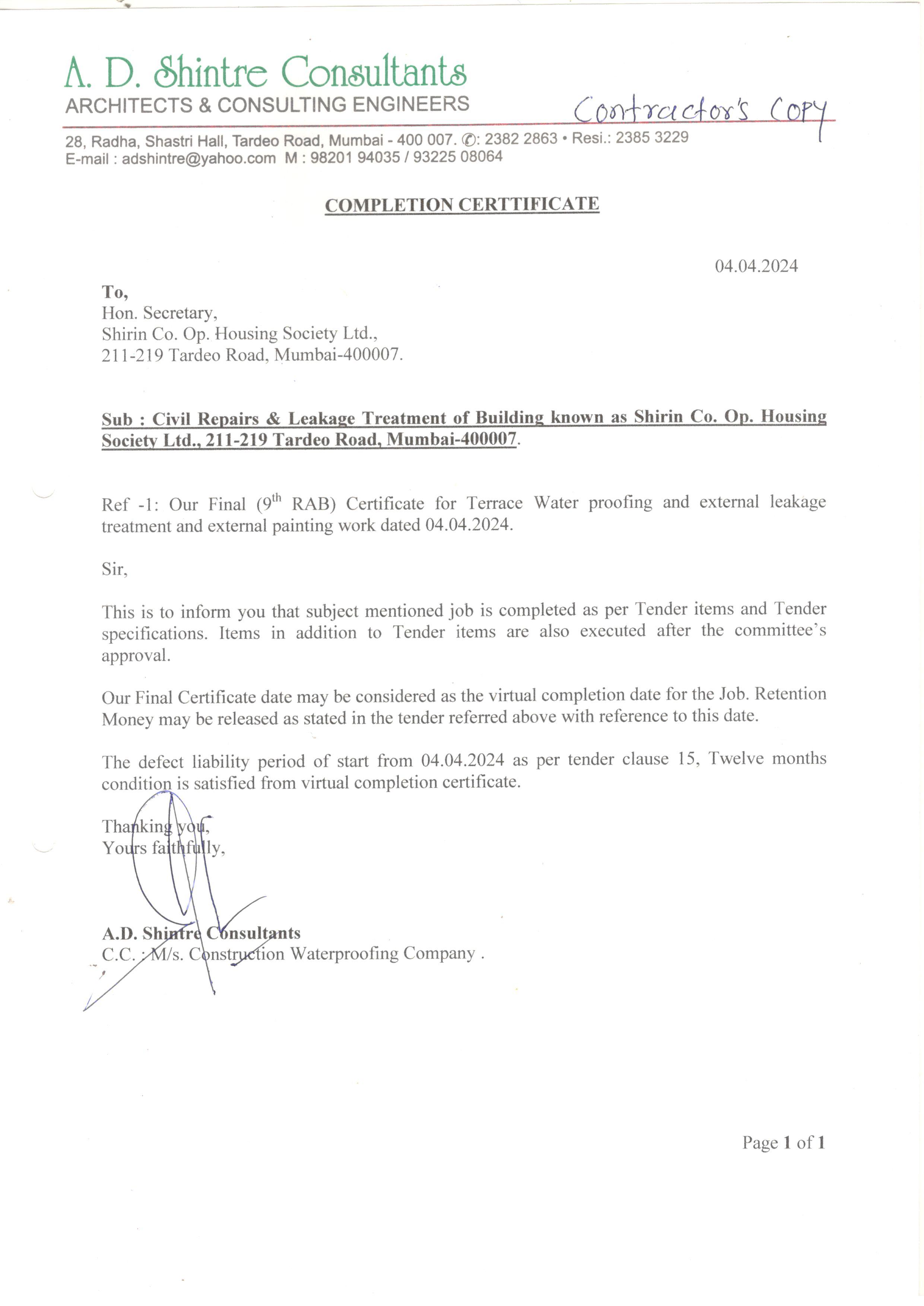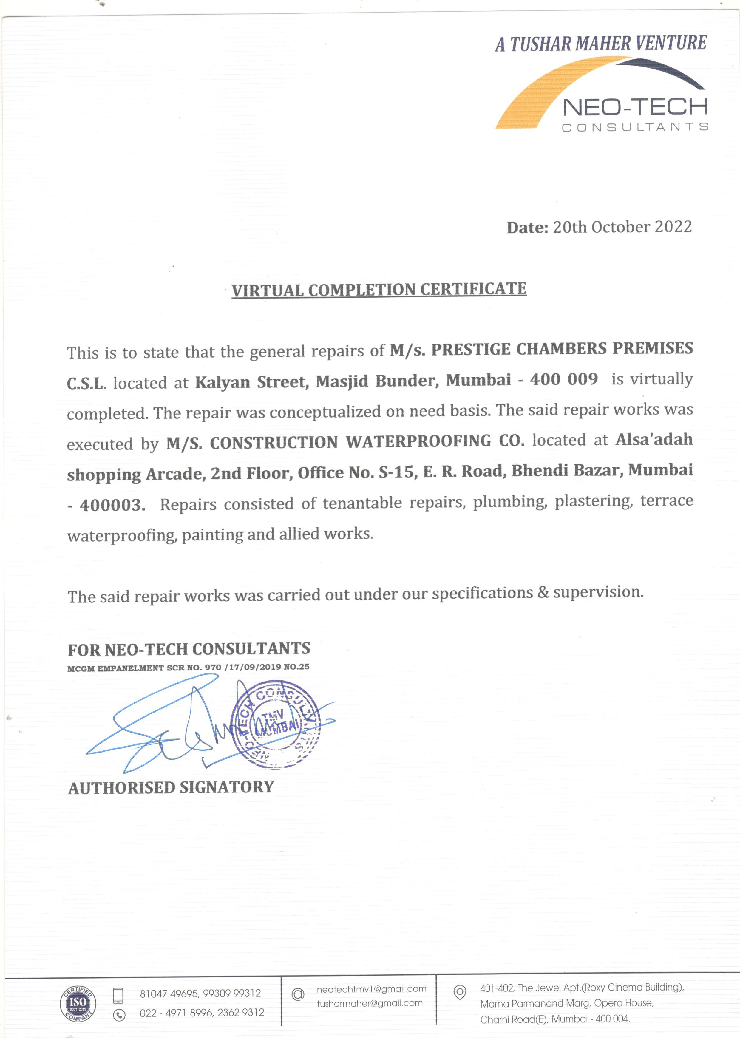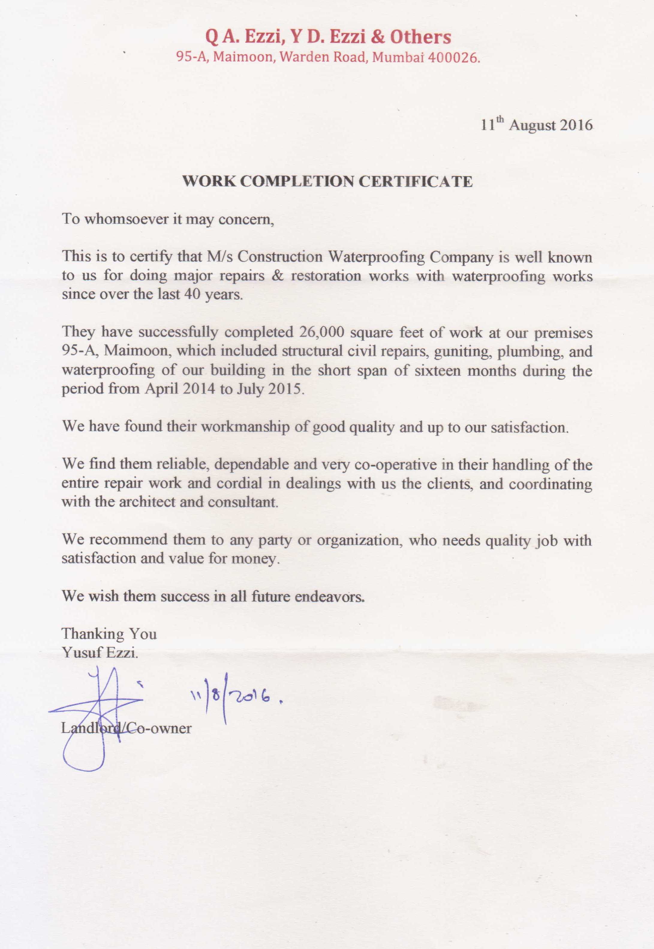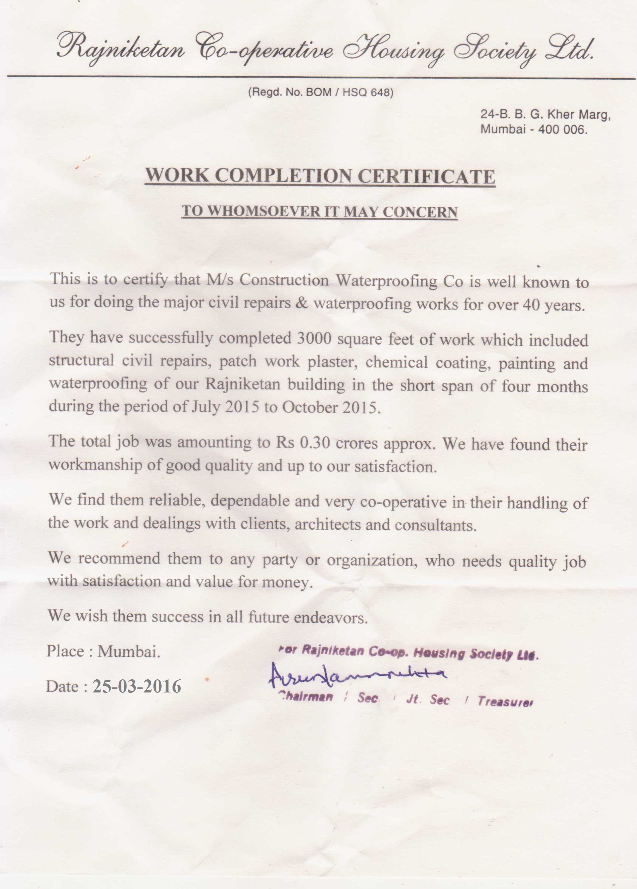 work completion certificates