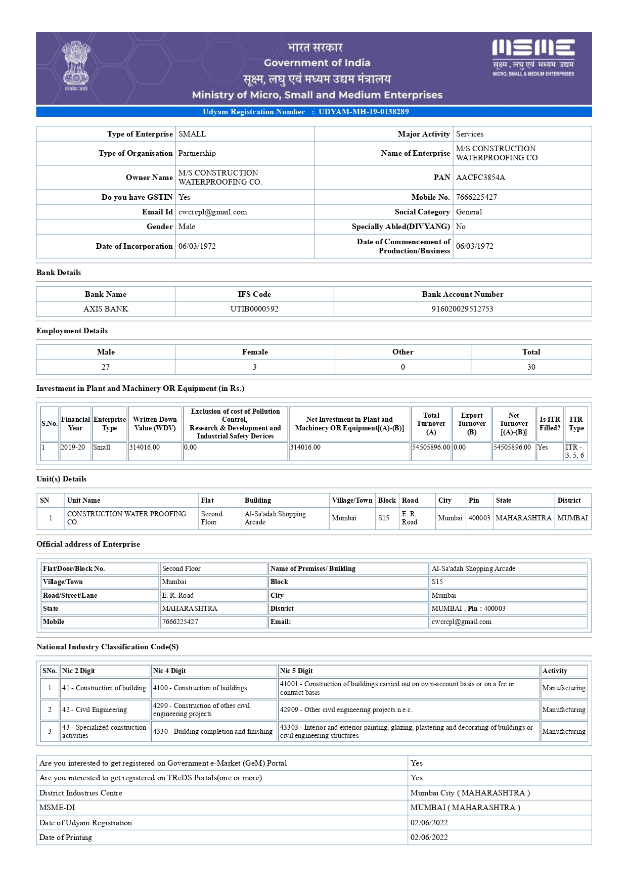 MSME Certificate - MH19D0061504 - Page 1