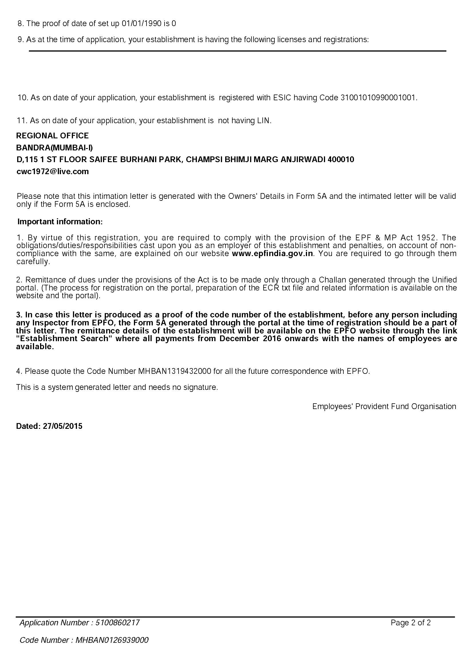 Provident Fund Allotment Letter - Page 2