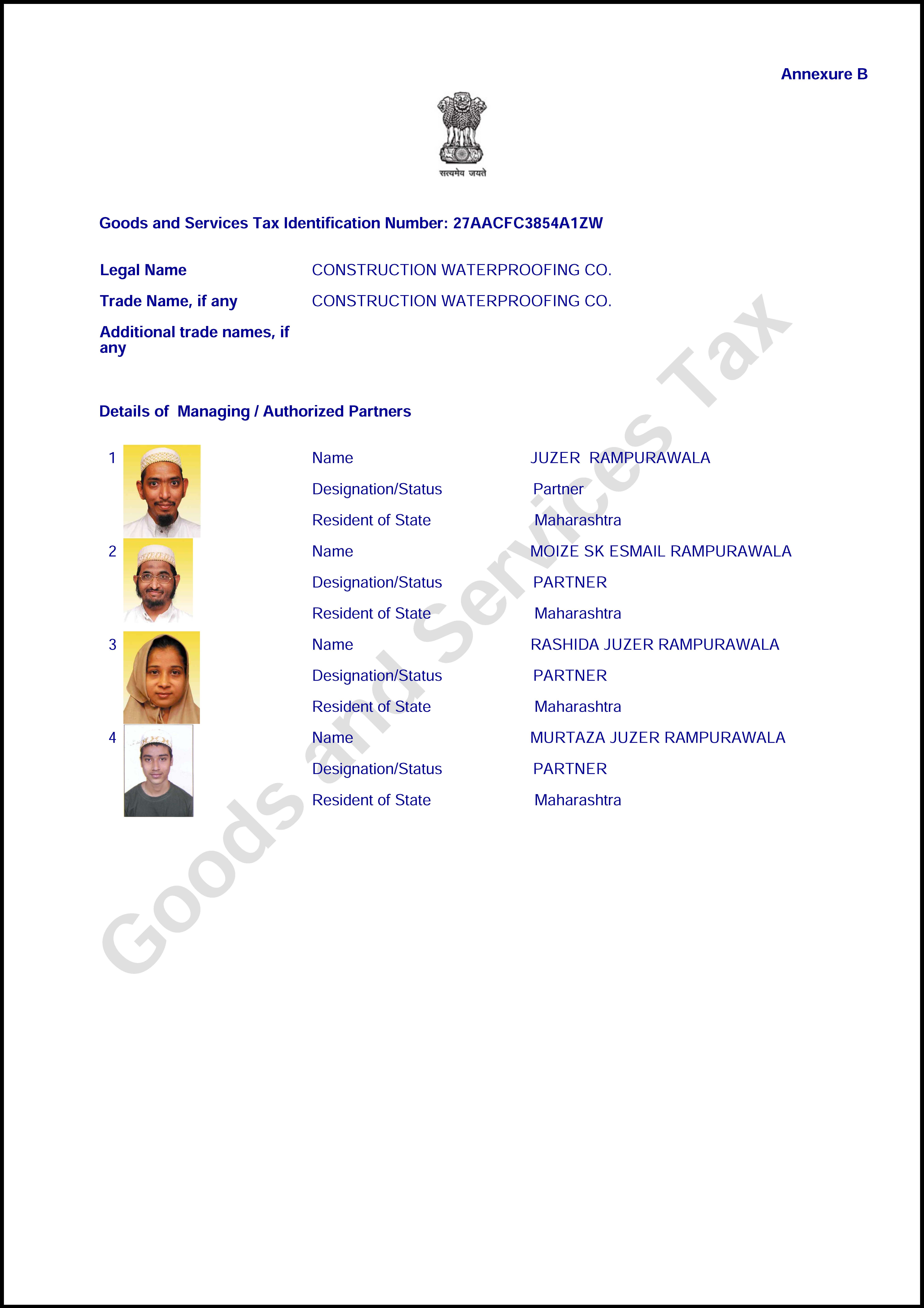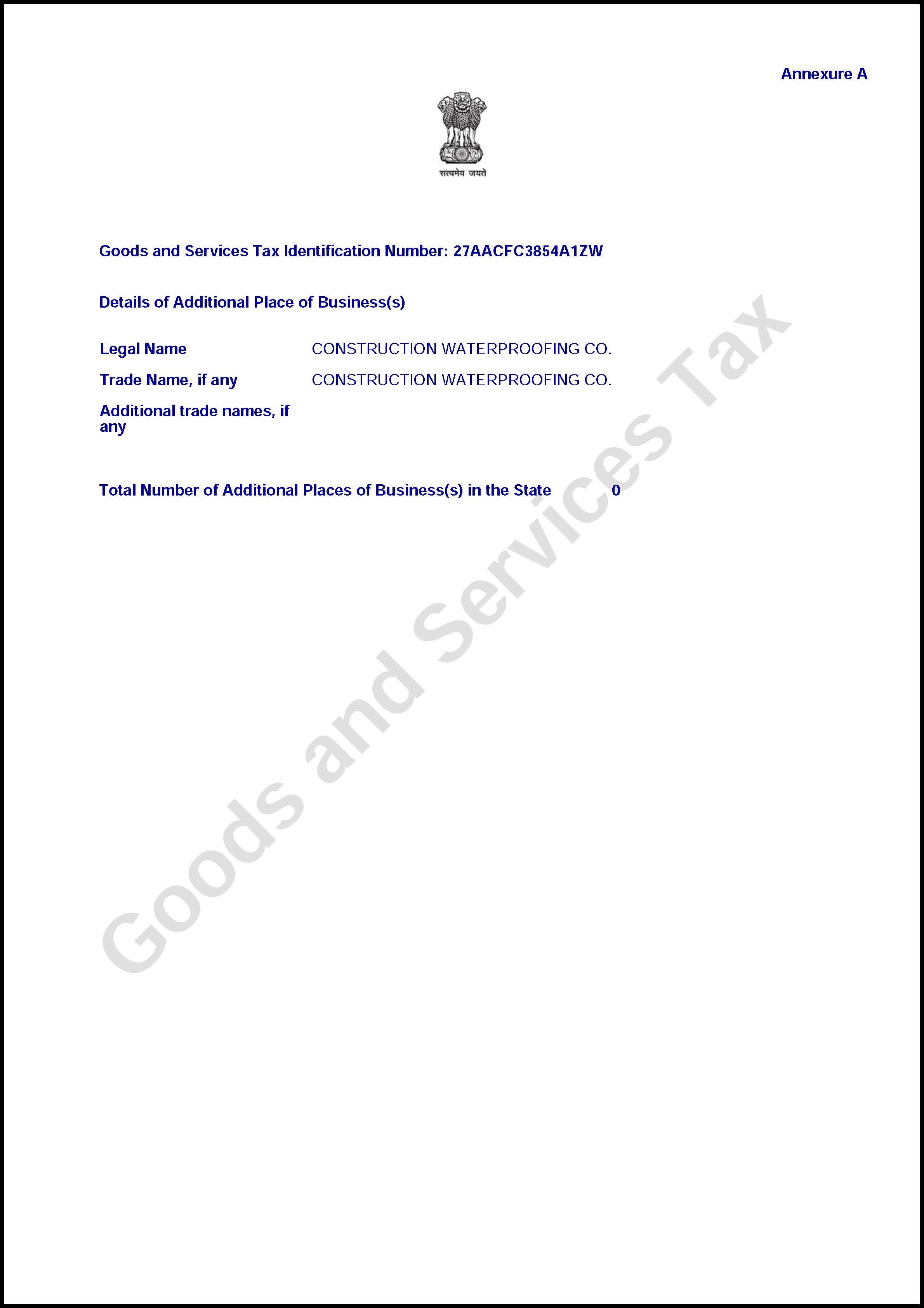 GST Certificate - 27AACFC3854A1ZW - Page 2