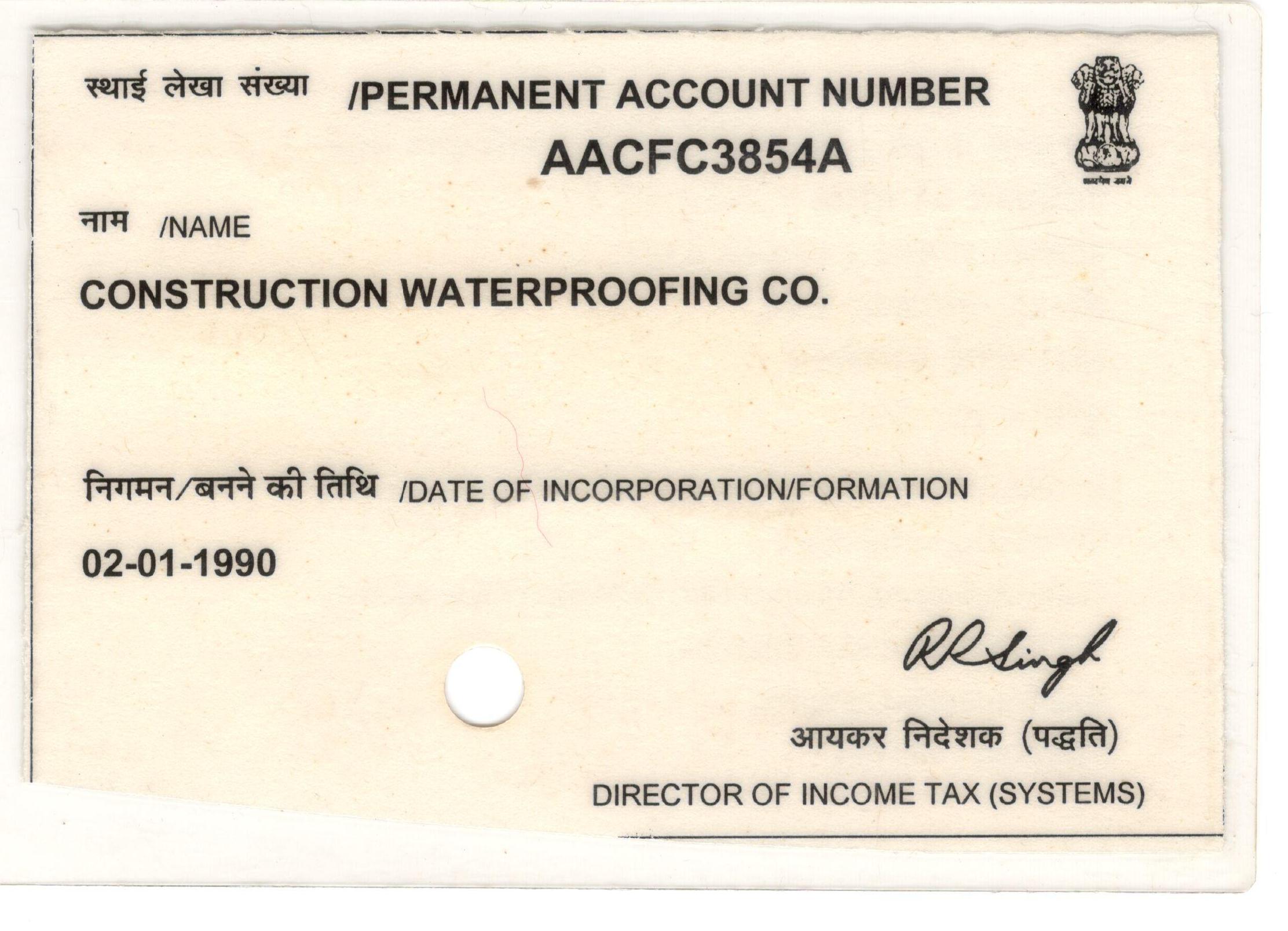 PAN Card - AACF3854A